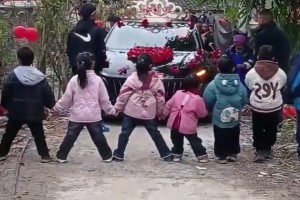 小朋友拦婚车要红包,主家大方派送