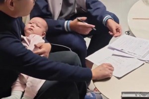 爸妈讨论问题,怀里萌娃皱眉似听不懂